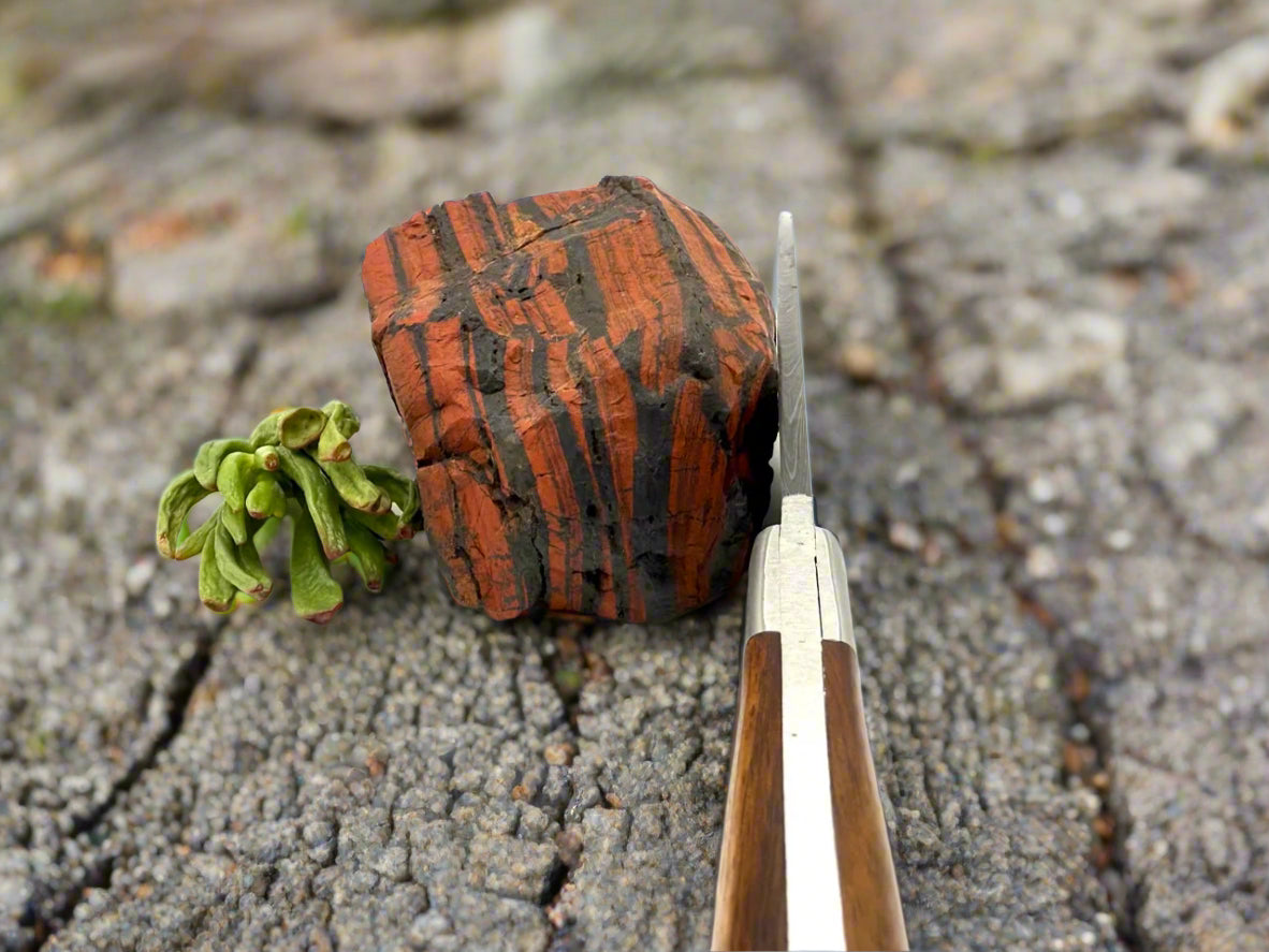 Our hand crafted knives are made with either stainless steel known as Japanese 440c and is a well-known type of Japanese stainless steel used for making knives. It's popular because it resists rust well, stays sharp for a long time, and cuts effectively.It has a rockwell hardness of 60-61 after heat treatment.